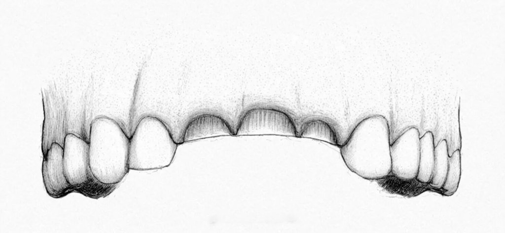В некоторых случаях вместо адаптационного протеза устанавливают формирователь десны, поверх которого может быть предложена съемная пластиковая конструкция. Она будет держаться за соседние зубы и не задевать формирователь, роль которого ― создание красивого и плотного края слизистой.